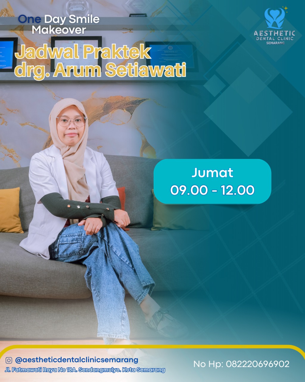 Temui drg. Arum di Aesthetic Dental Clinic Semarang, tempat bisa mendapatkan perawatan gigi yang aman, profesional, dan penuh perhatian.